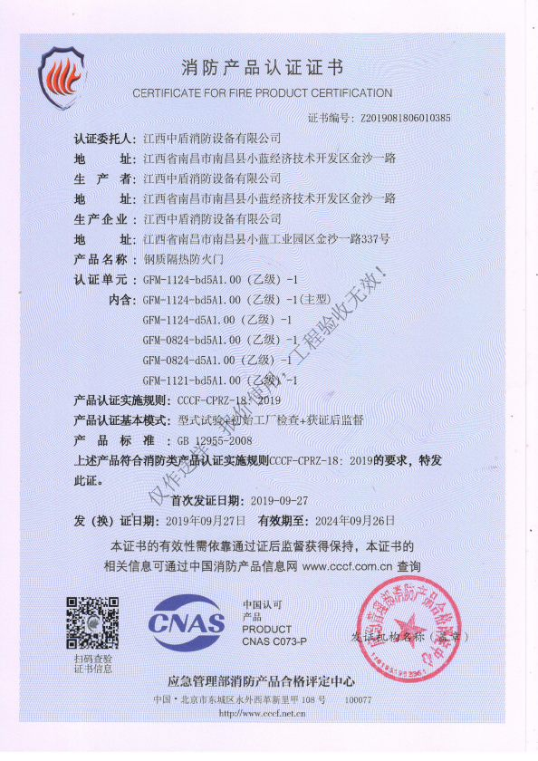 GFM 1124-bd5(乙级)钢质隔热防火门